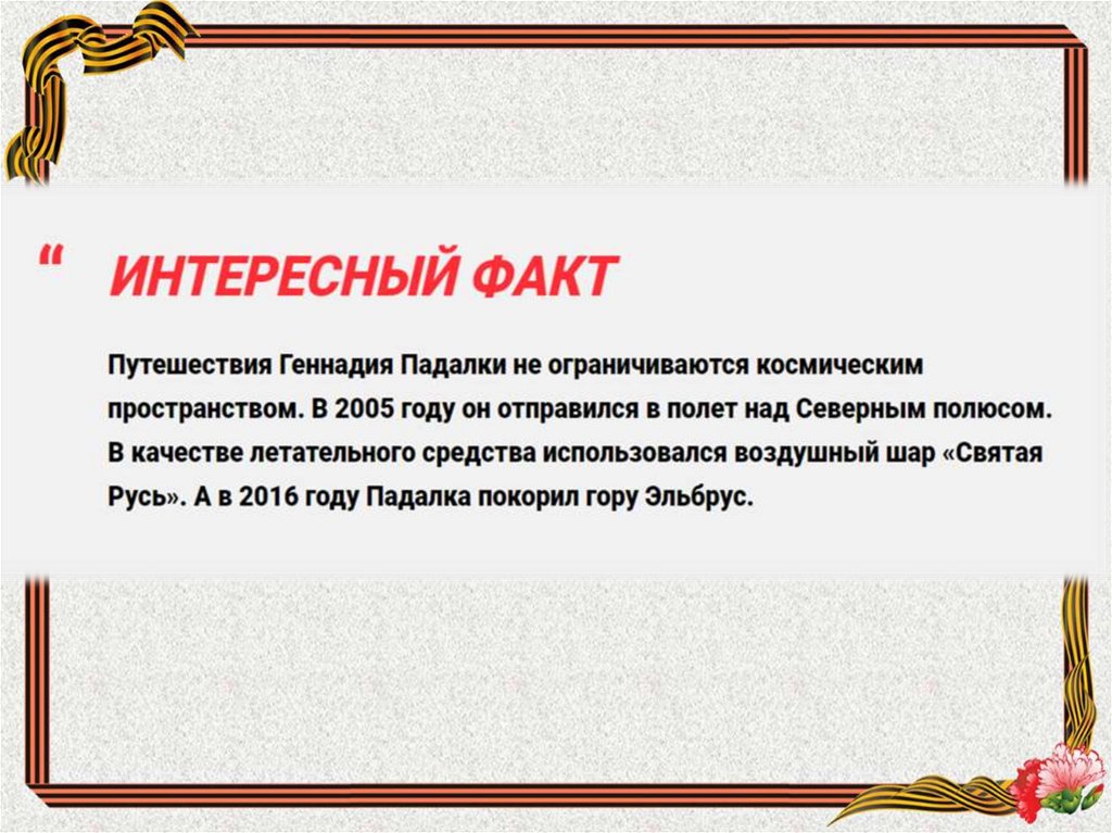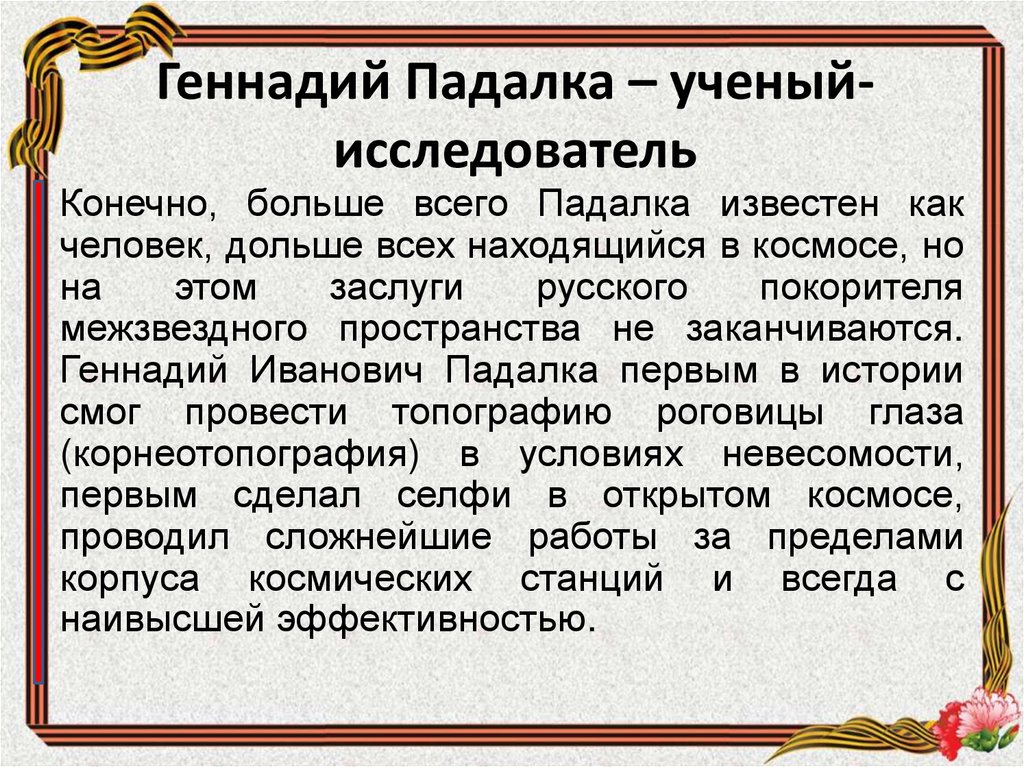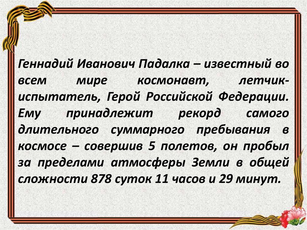 Геннадий Иванович Падалка - космонавт, летчик - испытатель, Герой Российской Федерации