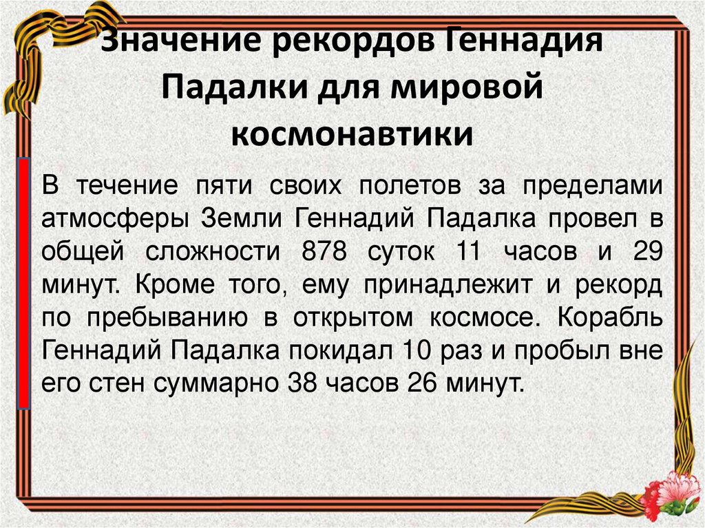 Геннадий Падалка покидал 10 раз и пробыл вне