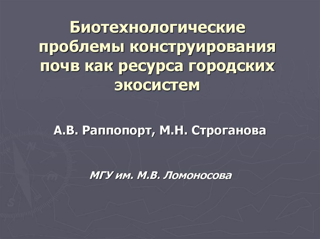 1. Биотехнологические проблемы конструирования почв как ресурса городских экосистем