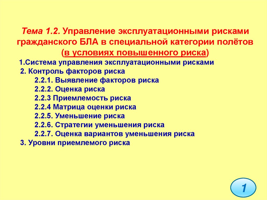 Тема 1.2. Управление эксплуатационными рискамигражданского БЛА в специальной категории полётов