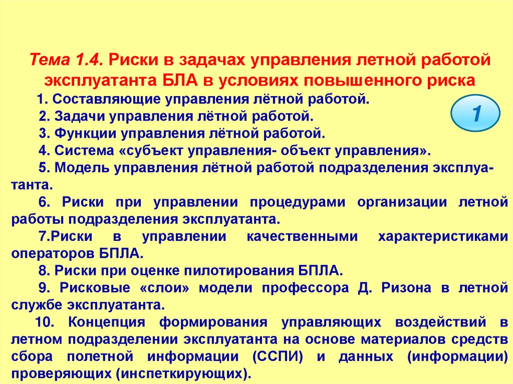 Тема 1.4. Риски в задачах управления летной работойэксплуатанта БЛА в условиях повышенного риска