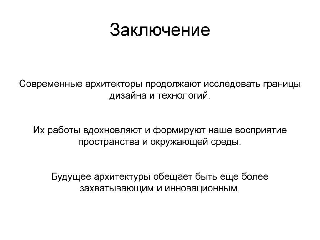 ЗаключениеСовременные архитекторы продолжают исследовать границы