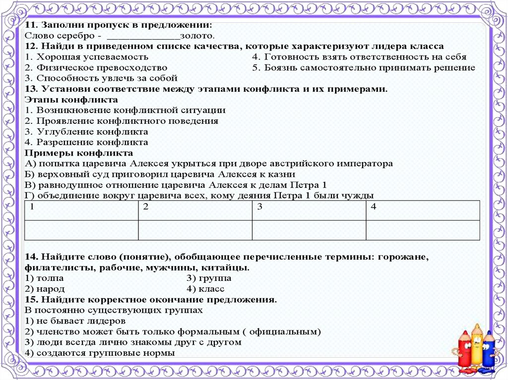 12. Найди в приведенном списке качества, которые характеризуют лидера класса