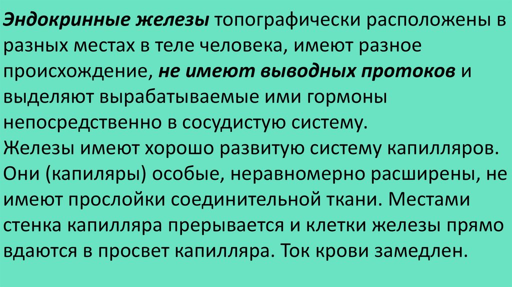 Эндокринные железы топографически расположены вразных местах в теле человека, имеют разное