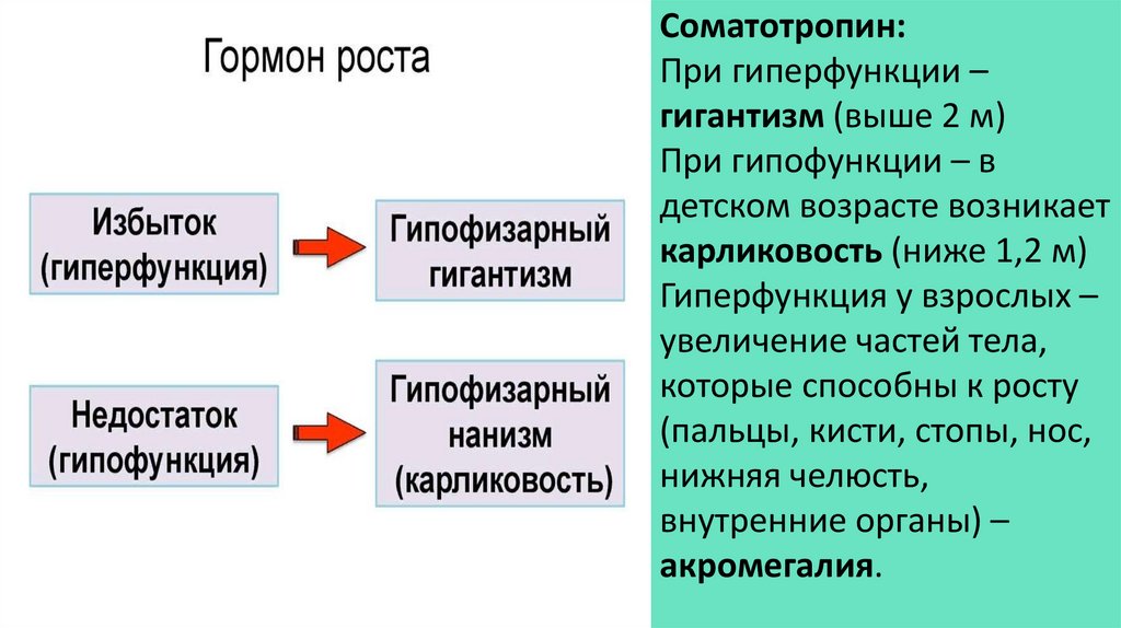 Соматотропин:При гиперфункции –