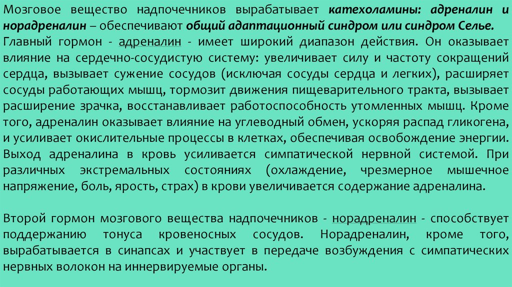 (адреналин, норадреналин, тироксин).