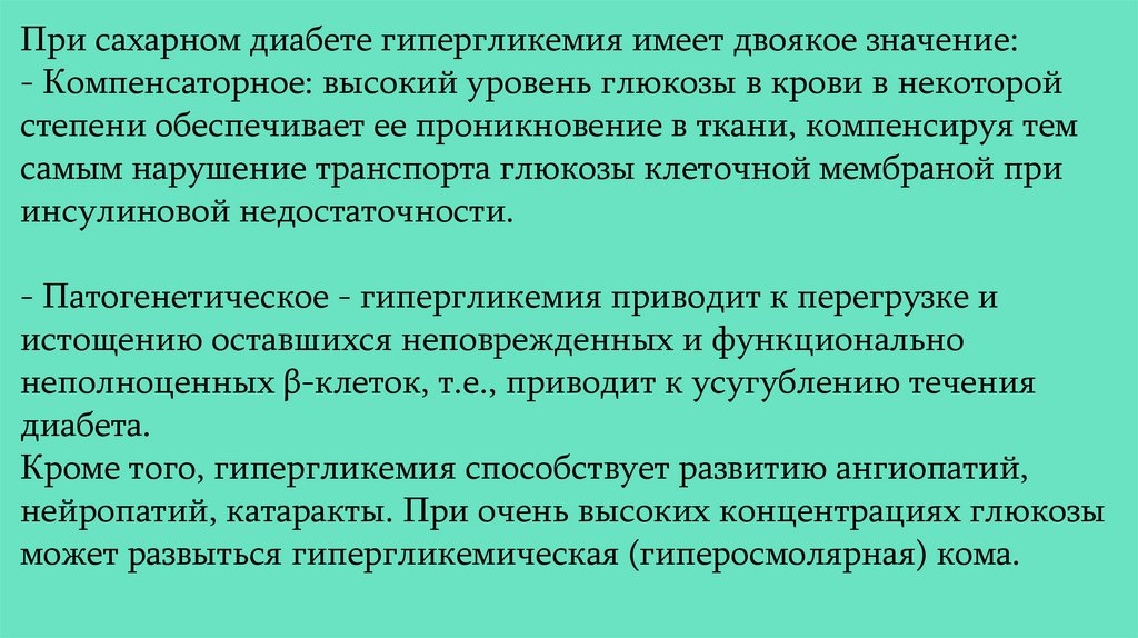 уровня глюкозы и высокий риск хронических осложнений.