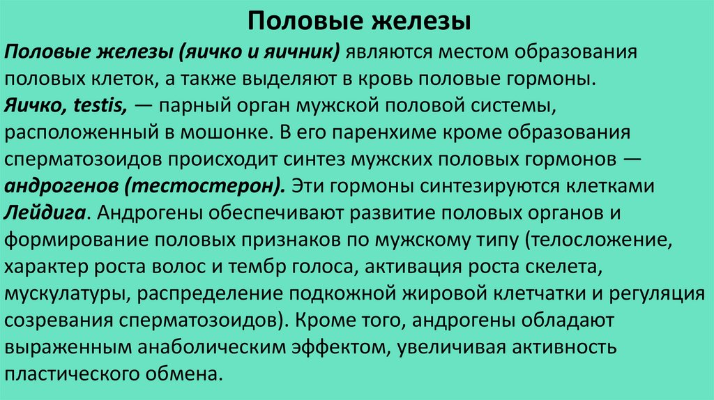 половых клеток, а также выделяют в кровь половые гормоны.