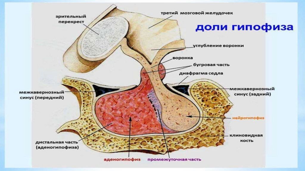 переднюю и заднюю. Передняя доля (аденогипофиз)