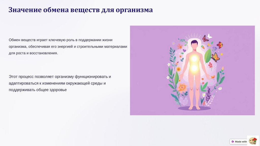 Значение обмена веществ для организмаОбмен веществ играет ключевую роль в поддержании жизни