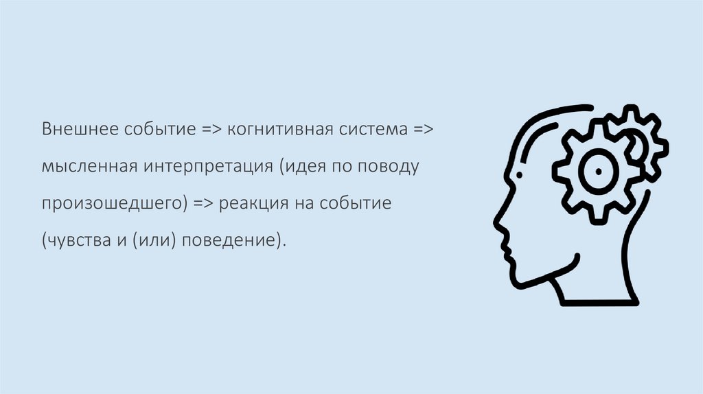Внешнее событие => когнитивная система =>мысленная интерпретация (идея по поводу