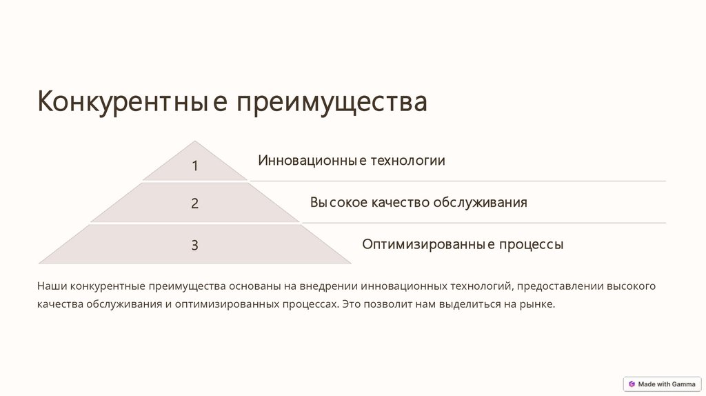 Наши конкурентные преимущества основаны на внедрении инновационных технологий, предоставлении высокого