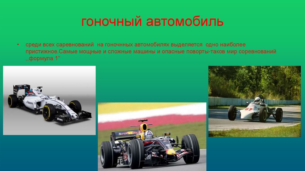 гоночный автомобильсреди всех саревнований на гоночнных автомобилях выделяется одно наиболее