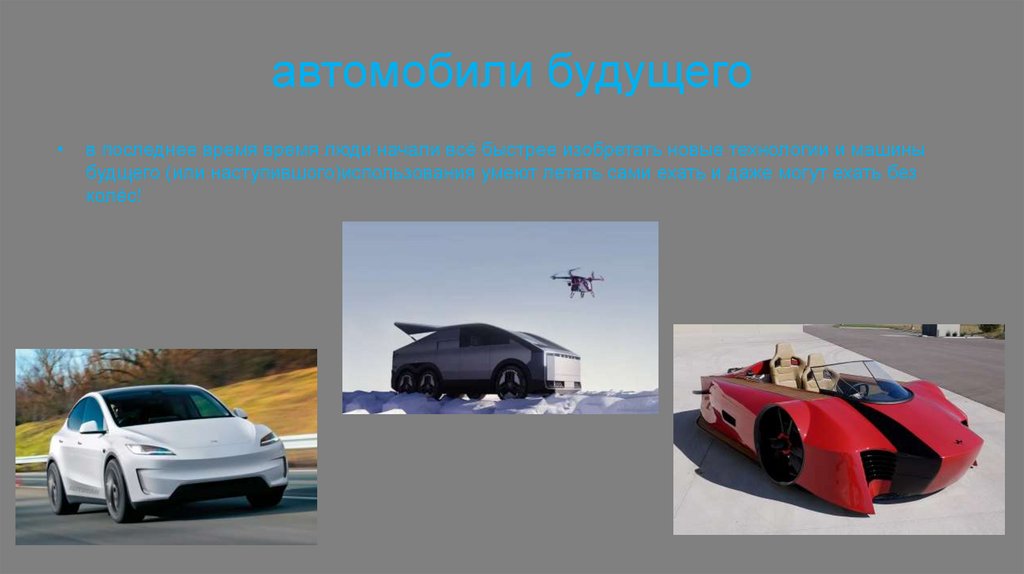 автомобили будущегов последнее время время люди начали всё быстрее изобретать новые технологии и машины