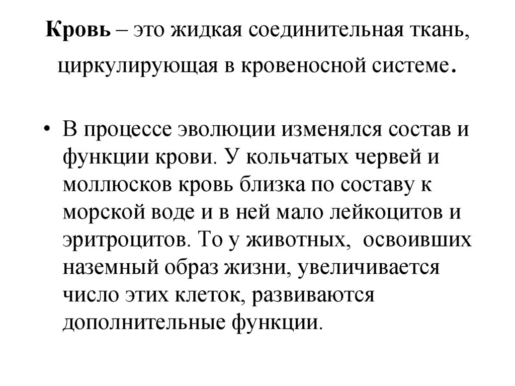Кровь – это жидкая соединительная ткань,циркулирующая в кровеносной системе.