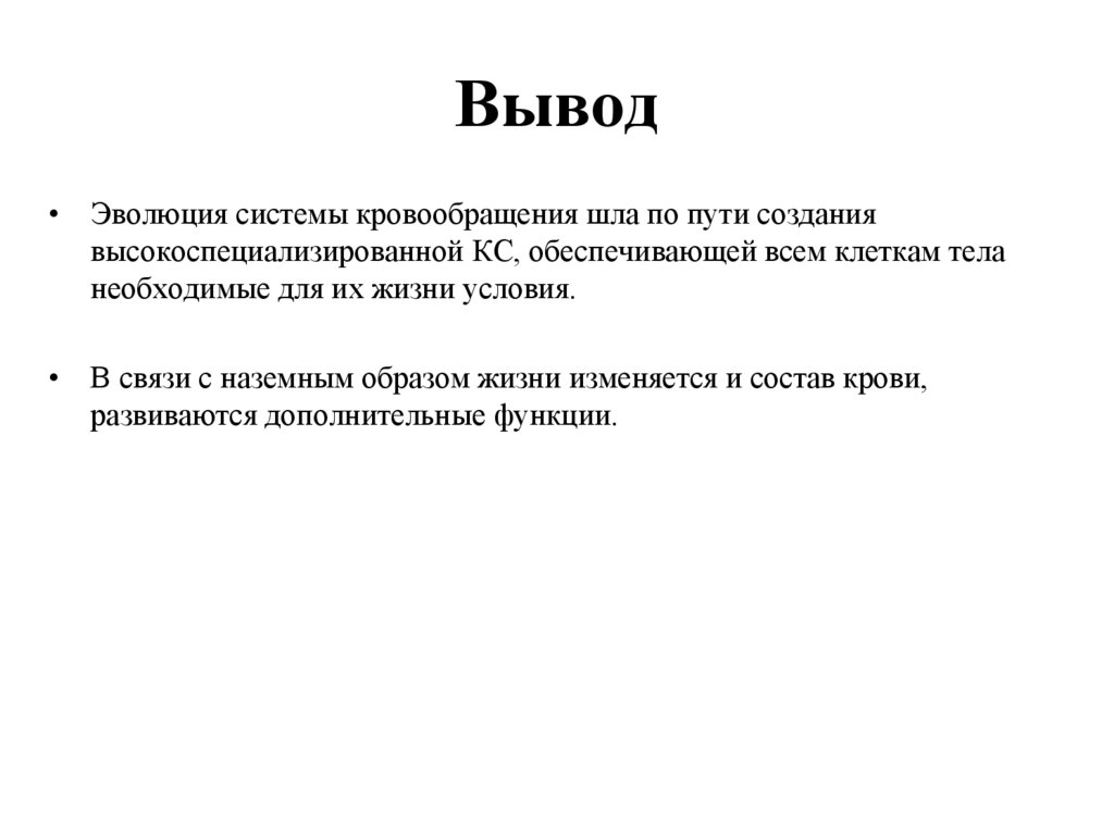 Вывод• Эволюция системы кровообращения шла по пути создания