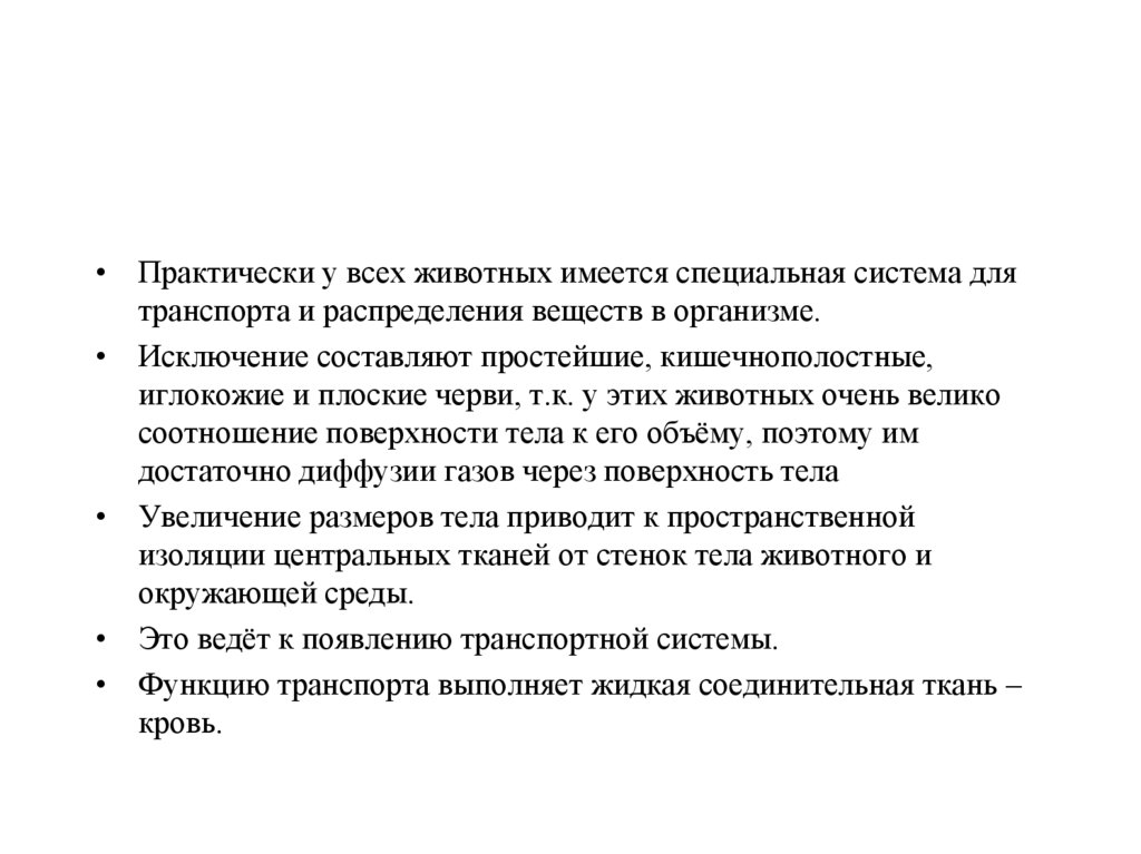 • Практически у всех животных имеется специальная система длятранспорта и распределения веществ в организме.