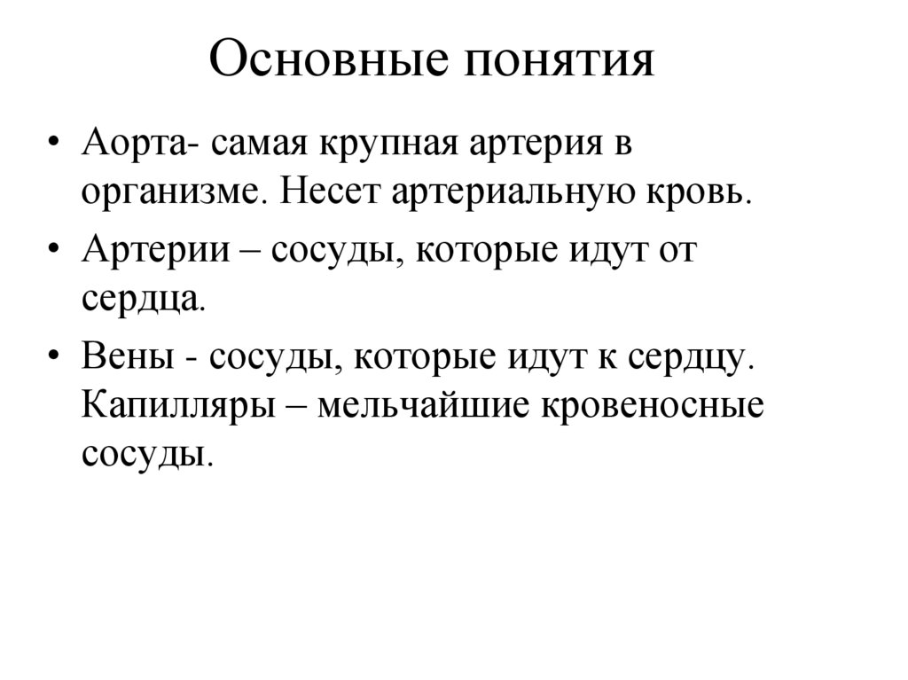 Основные понятия• Аорта- самая крупная артерия в