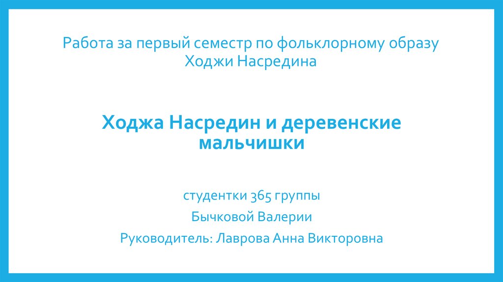 Работа за первый семестр по фольклорному образуХоджи Насредина
