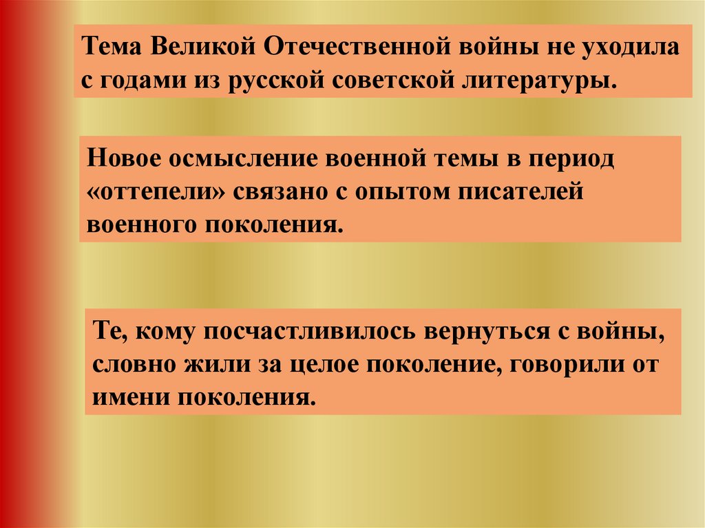 Произведения писателей-фронтовиков вызвалив обществе широкий отклик.