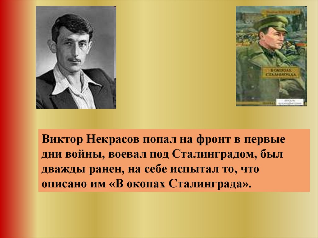 Виктор Некрасов попал на фронт в первыедни войны, воевал под Сталинградом, был
