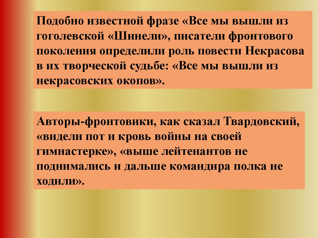 Подобно известной фразе «Все мы вышли изгоголевской «Шинели», писатели фронтового