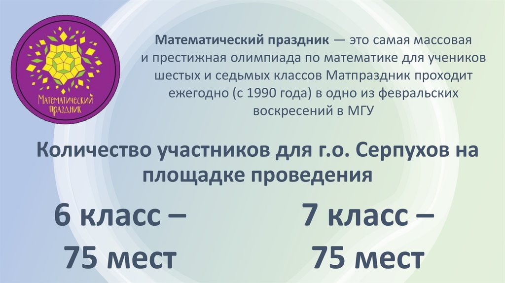 Математический праздник — это самая массоваяи престижная олимпиада по математике для учеников
