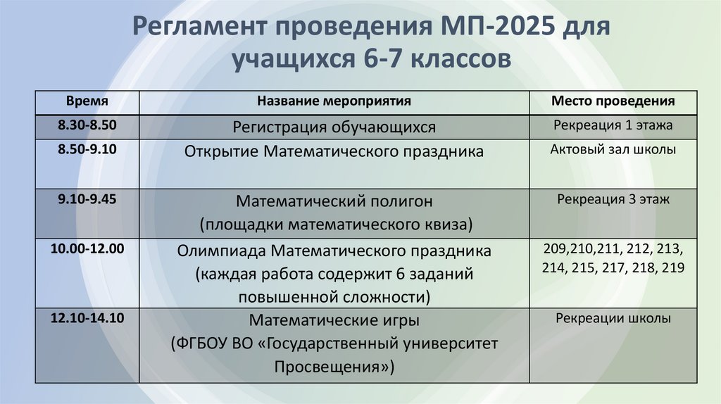 Регламент проведения МП-2025 дляучащихся 6-7 классов