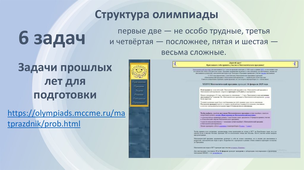 Структура олимпиады6 задач
