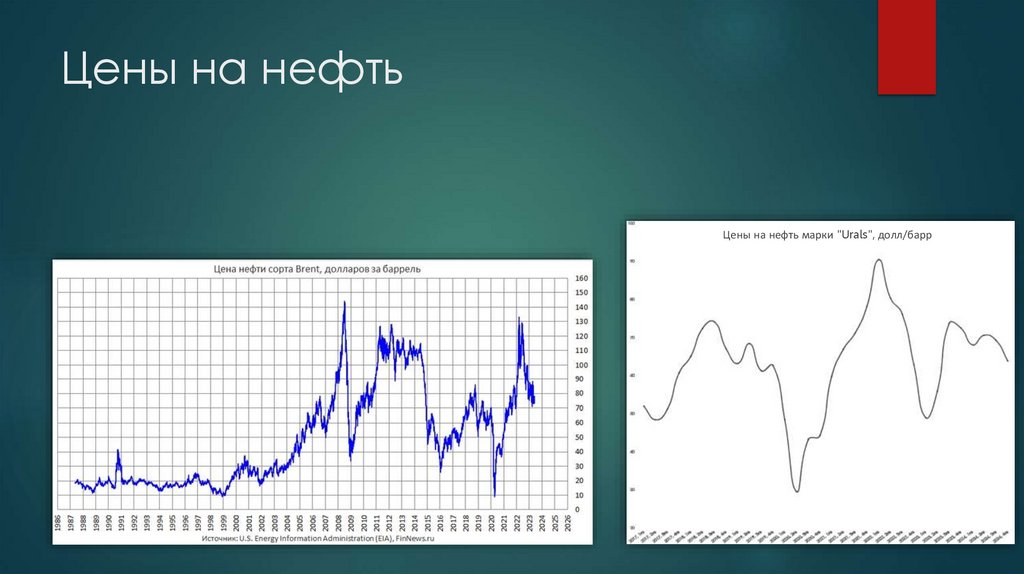 Цены на нефтьЦены на нефть марки "Urals", долл/барр