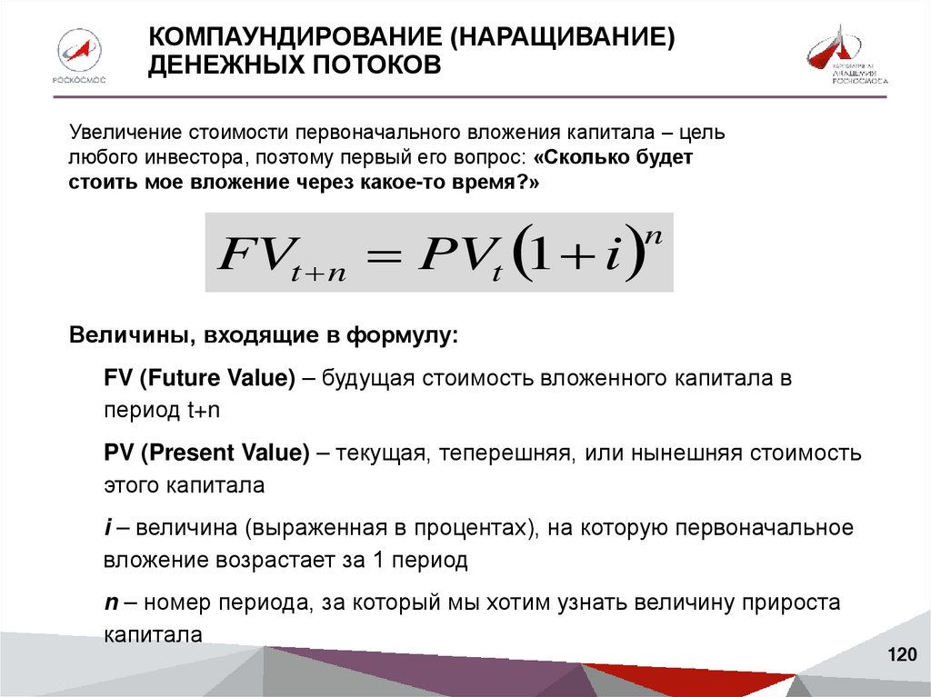 ПОТОКОВ, а получаемый результат – ПРИВЕДЕННОЙ СТОИМОСТЬЮ