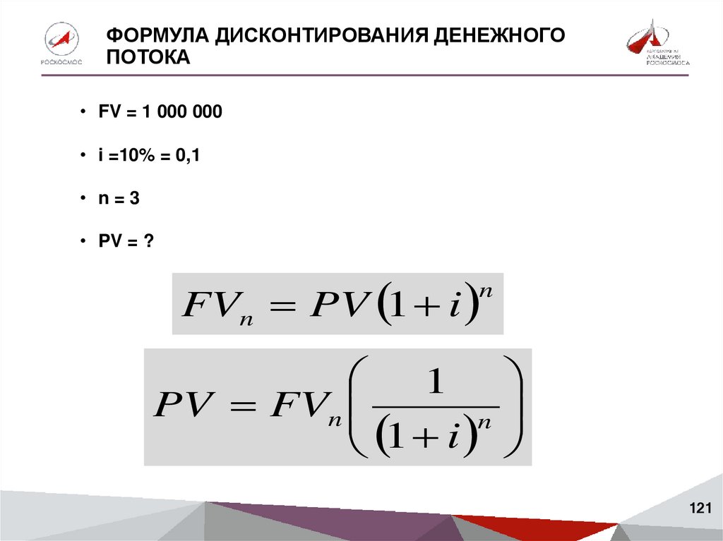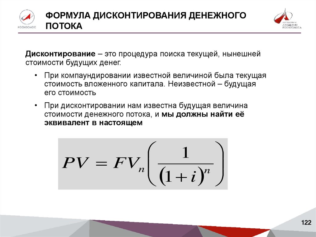 Эта процедура называется ДИСКОНТИРОВАНИЕМ ДЕНЕЖНЫХ