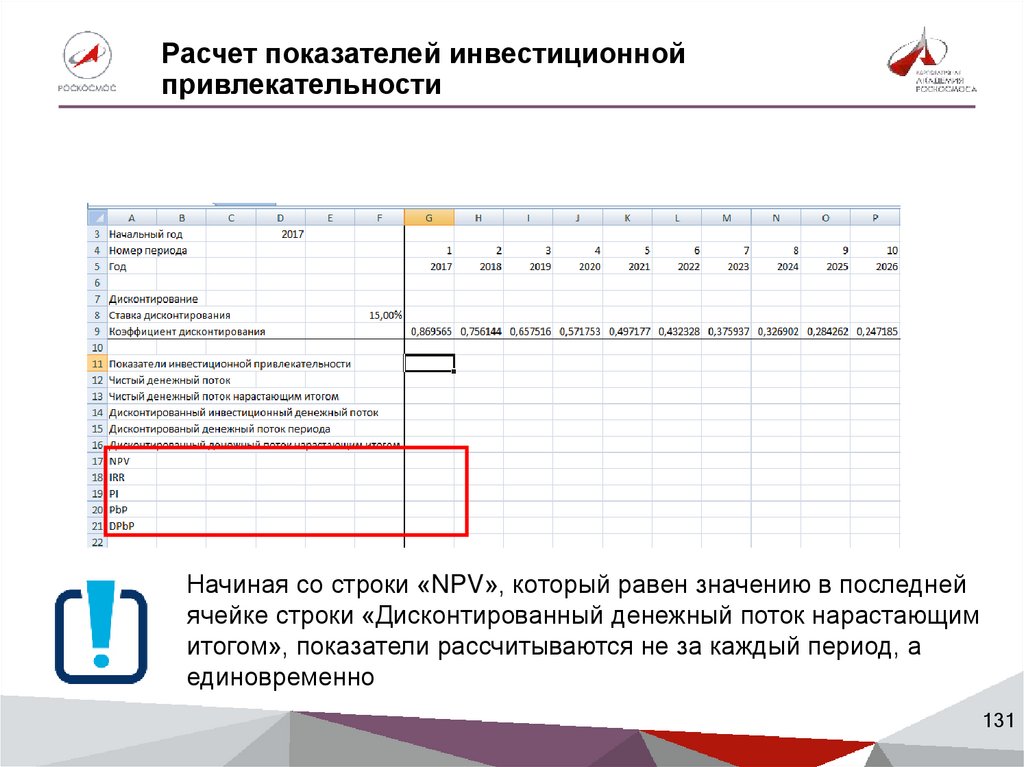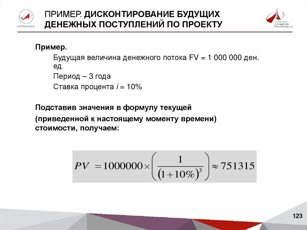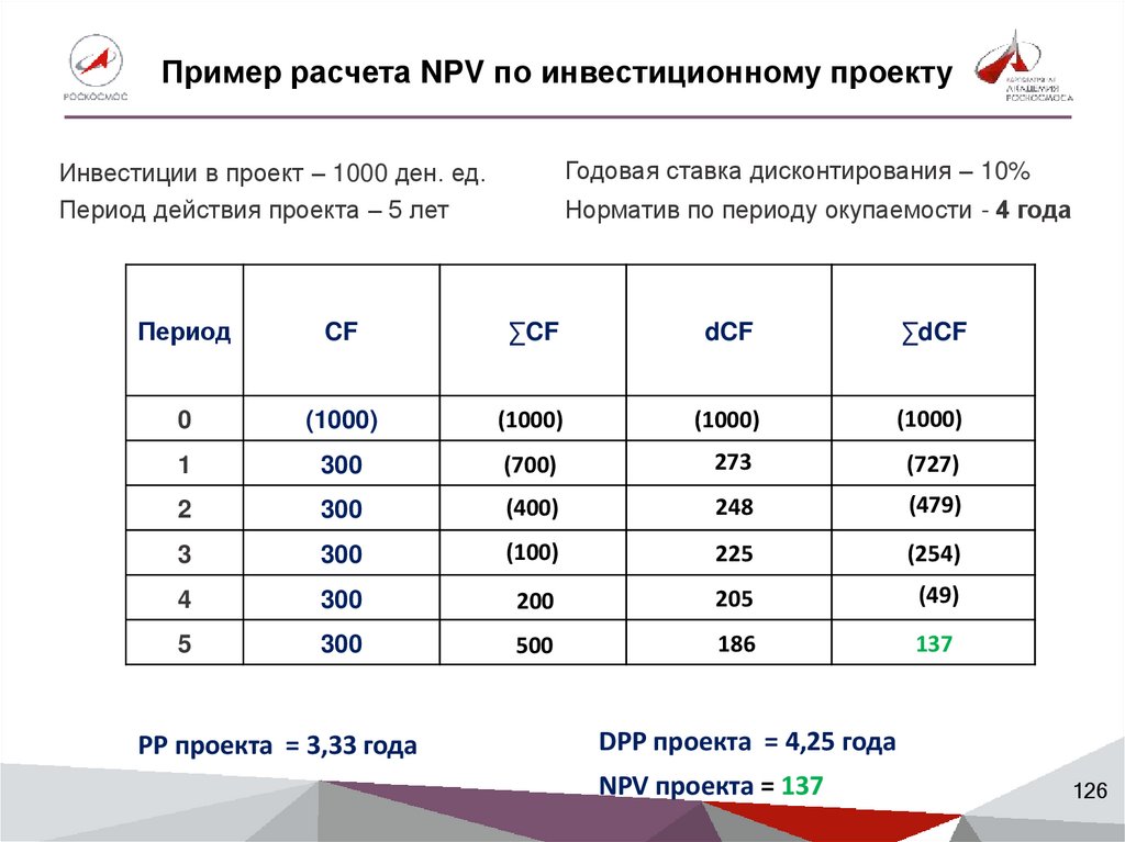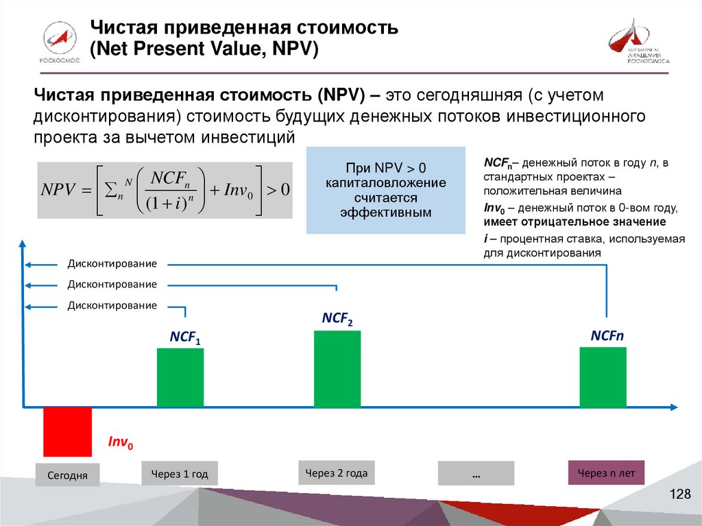 Для оценки стоимости проекта с точки зрения сегодняшнего дня необходимо