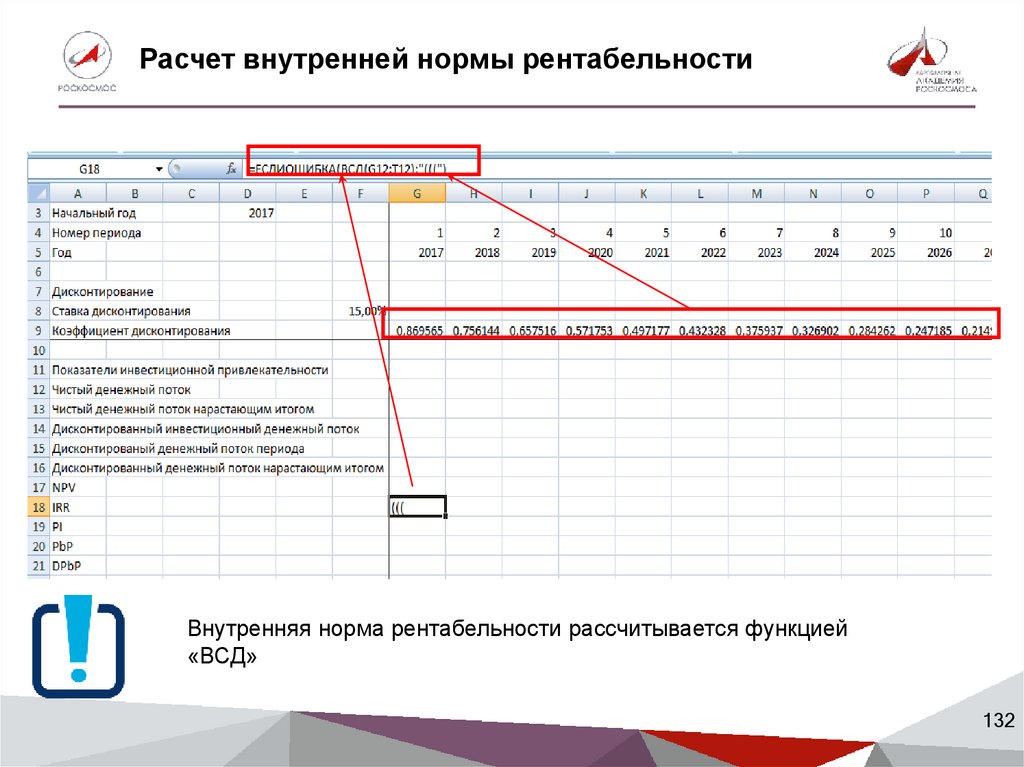 Расчет внутренней нормы рентабельностиВнутренняя норма рентабельности рассчитывается функцией