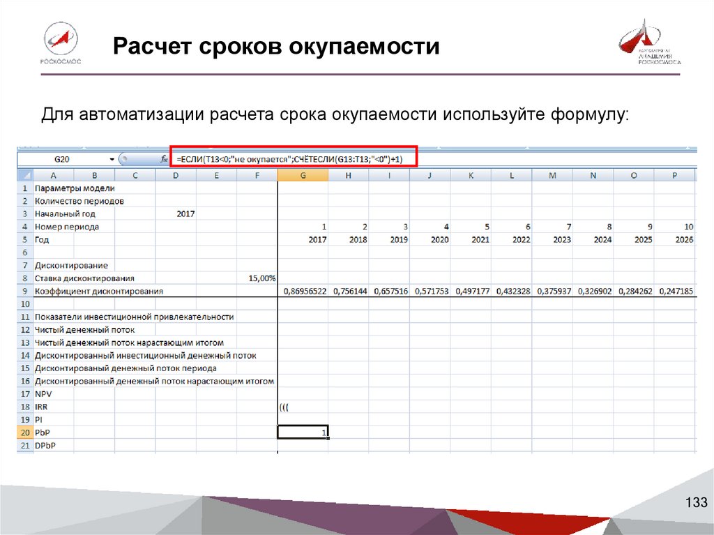 Расчет сроков окупаемостиДля автоматизации расчета срока окупаемости используйте формулу: