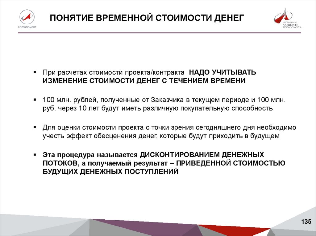 ПОНЯТИЕ ВРЕМЕННОЙ СТОИМОСТИ ДЕНЕГПри расчетах стоимости проекта/контракта НАДО УЧИТЫВАТЬ
