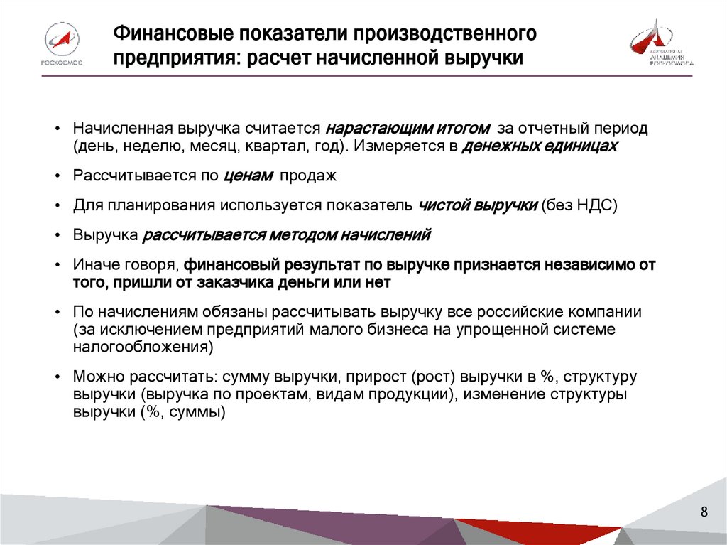 Финансовые показатели производственногопредприятия: расчет начисленной выручки