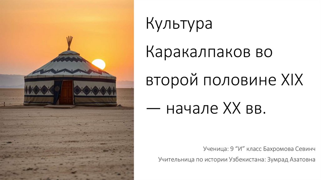 Культура Каракалпаков во второй половине XIX - начале XX века