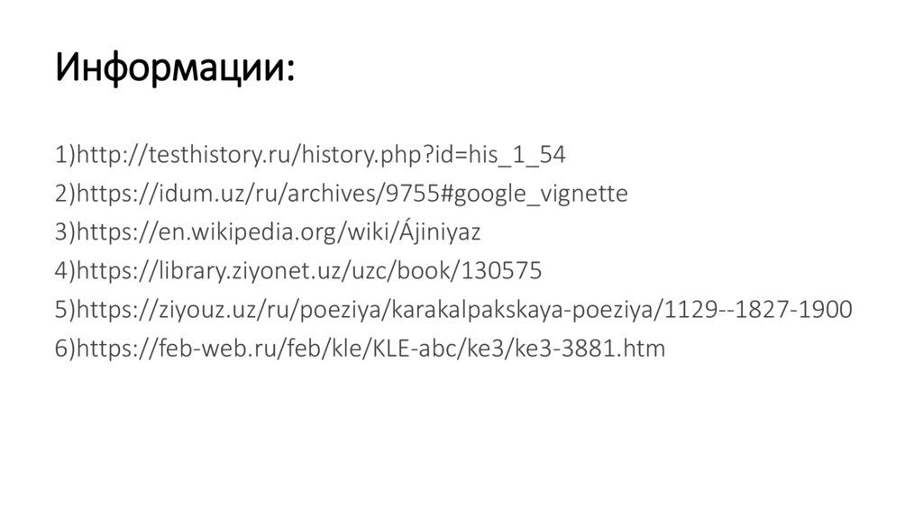 5)https://ziyouz.uz/ru/poeziya/karakalpakskaya-poeziya/1129--1827-1900
