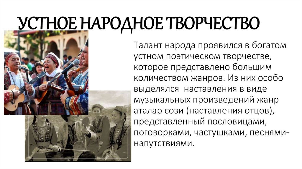 УСТНОЕ НАРОДНОЕ ТВОРЧЕСТВОТалант народа проявился в богатом