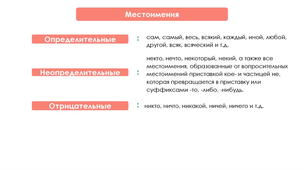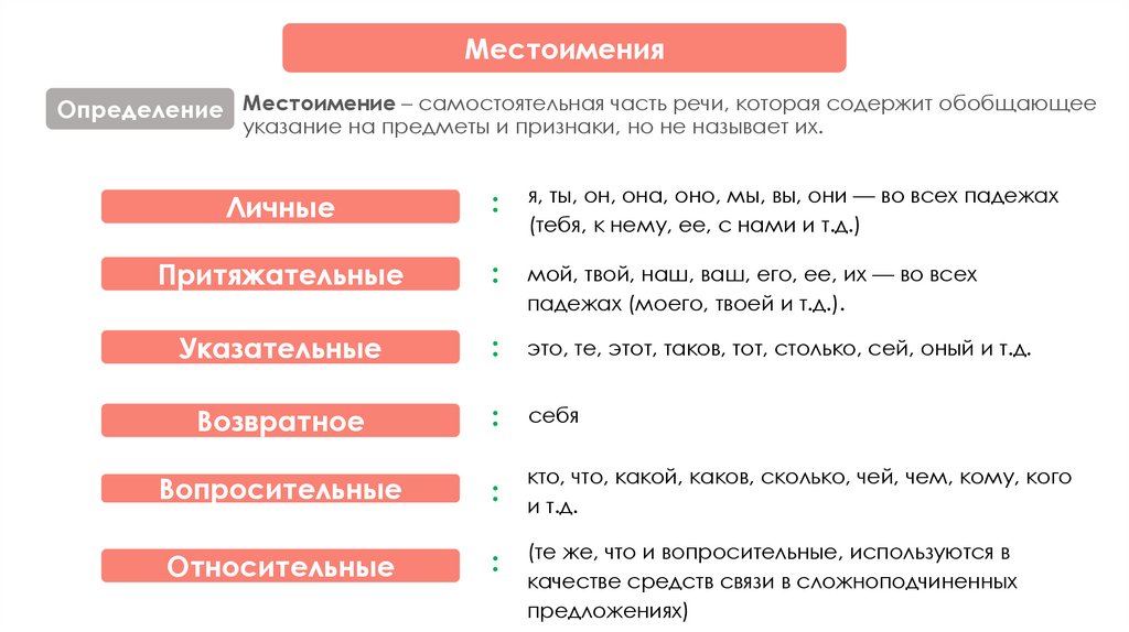 МестоименияОпределение Местоимение – самостоятельная часть речи, которая содержит обобщающее