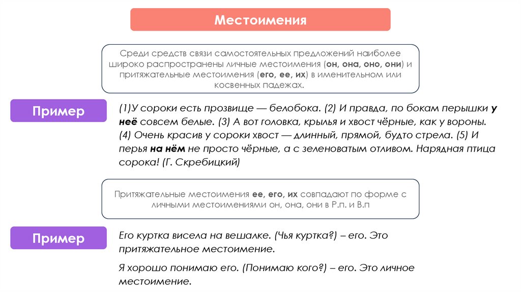 МестоименияСреди средств связи самостоятельных предложений наиболее