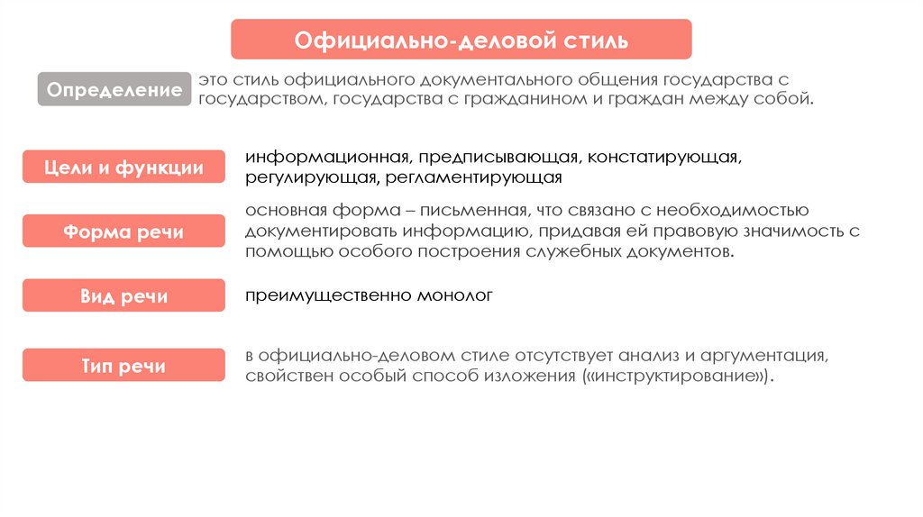в официально-деловом стиле отсутствует анализ и аргументация,