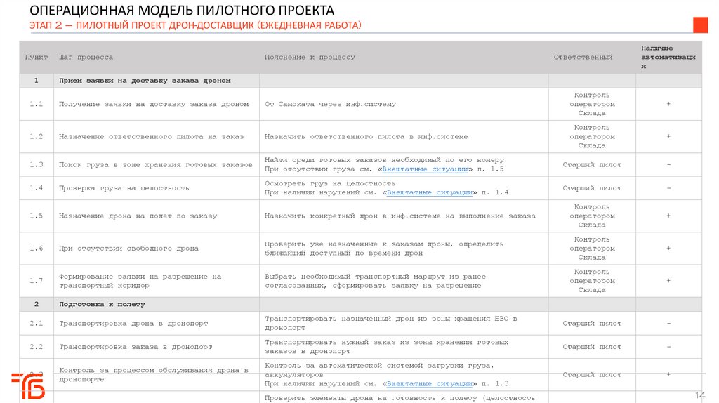 ОПЕРАЦИОННАЯ МОДЕЛЬ ПИЛОТНОГО ПРОЕКТАЭТАП ПОДГОТОВКИ