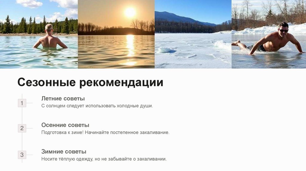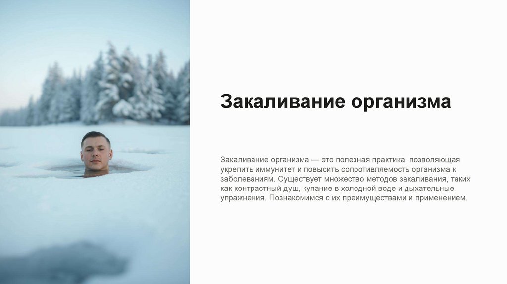 Закаливание организмаЗакаливание организма — это полезная практика, позволяющая