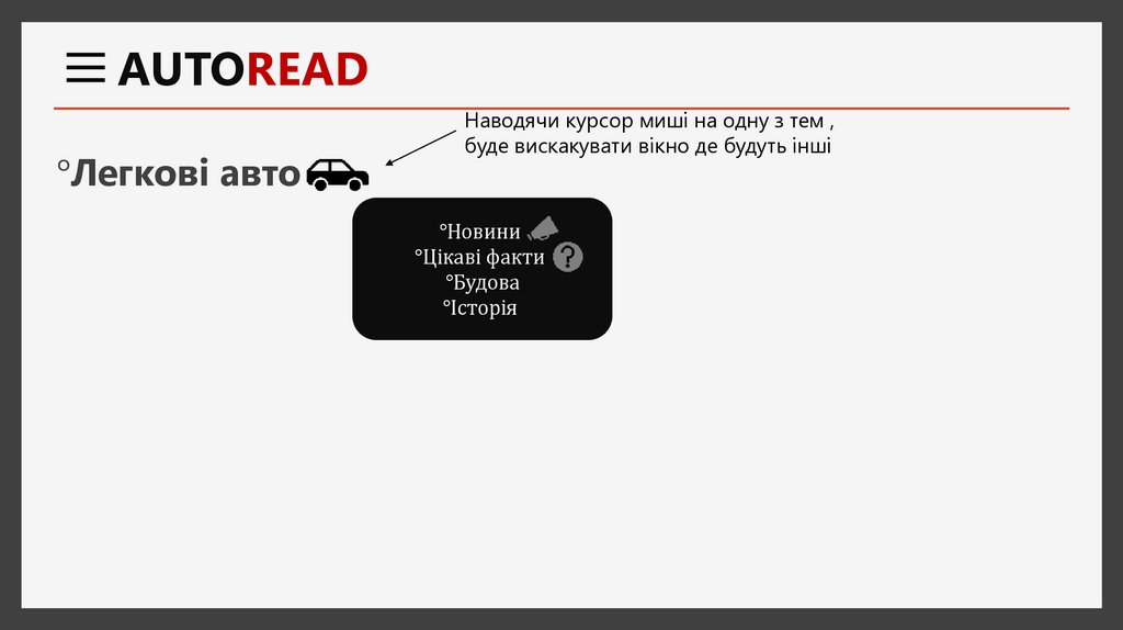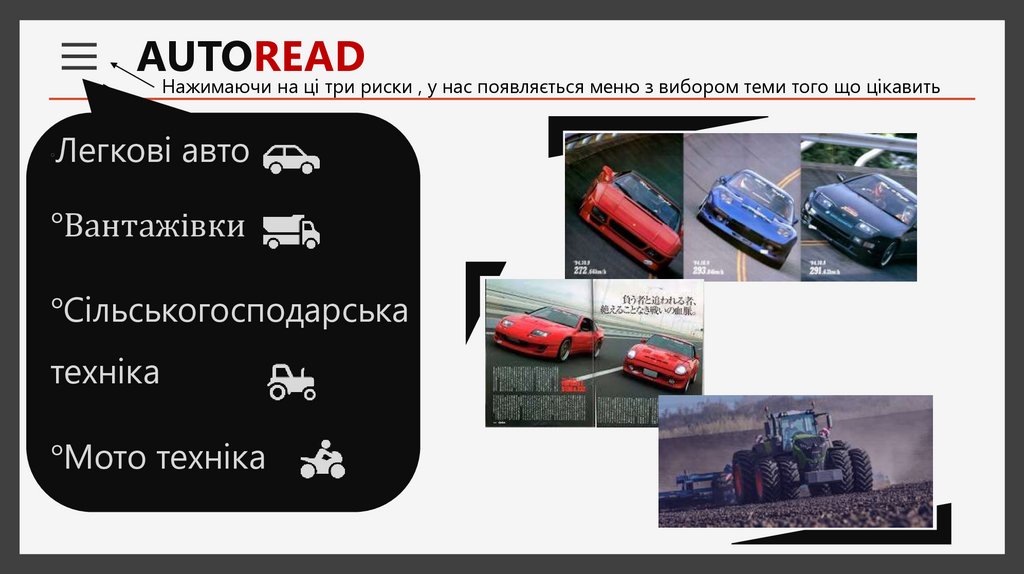 ≡ AUTOREADНажимаючи на ці три риски , у нас появляється меню з вибором теми того що цікавить