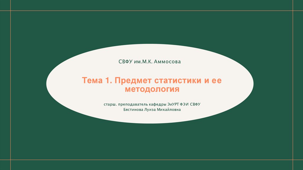 СВФУ им.М.К. АммосоваТема 1. Предмет статистики и ее