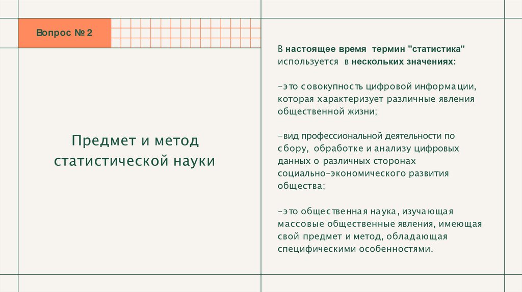 2.Предмет и метод статистической науки