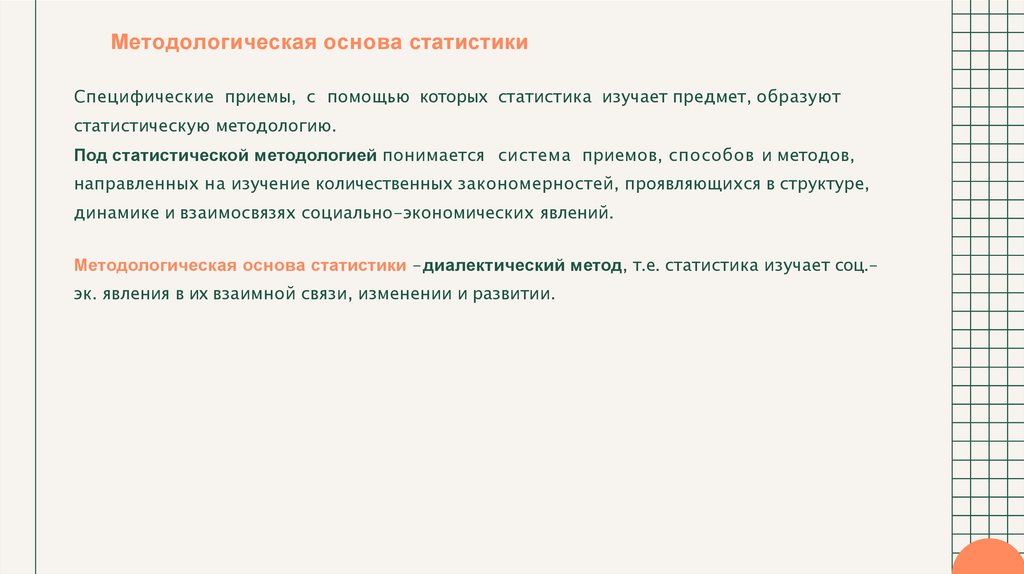 сводки, обобщения и анализа статистических данных, т. е. общую методологию