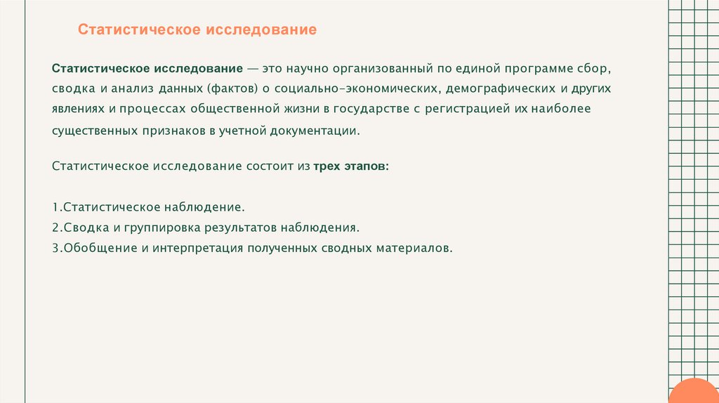 статистического исследования социально-экономических явлений. Она разрабатывает